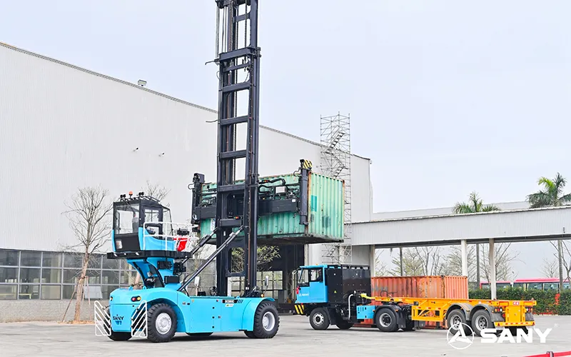 此外,三一重工根据不同的工作条件开发了不同的产品。针对码头的复杂工况,三一重工开发了业内首款换电小车和迷你自动充换电站,可实现8分钟快速换电。