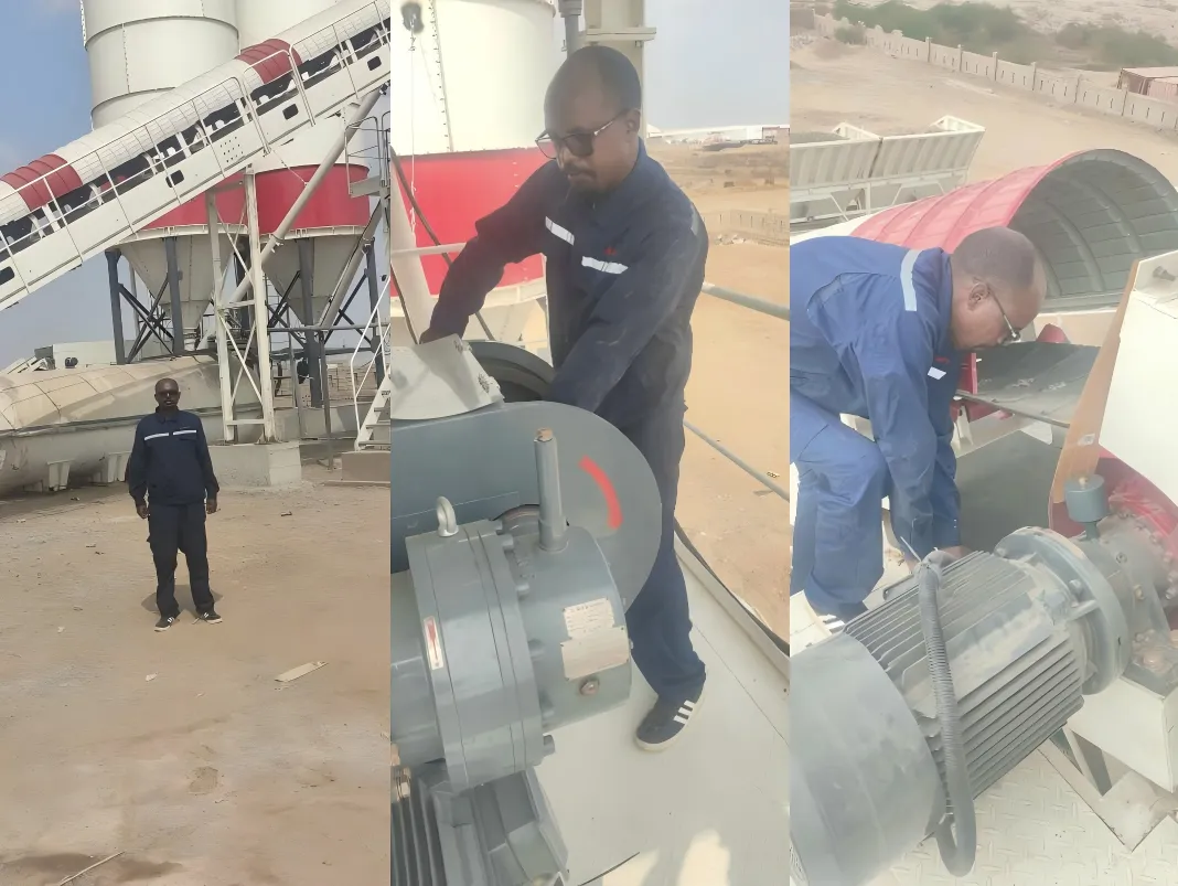 在苏丹港组装HZS60X10型搅拌站期间,三一服务工程师Teklit Gebrecherkos面临严峻考验。当地气温持续超过40摄氏度,且缺乏降温设施,每日有效作业时间极为有限。语言沟通也成为一大障碍,他需要在英语和当地通用的阿拉伯语之间艰难协调。更棘手的是,现场难以找到专业技术人员协助,从拧紧每一颗螺栓到调试整套系统,所有工作都需要他独立完成。