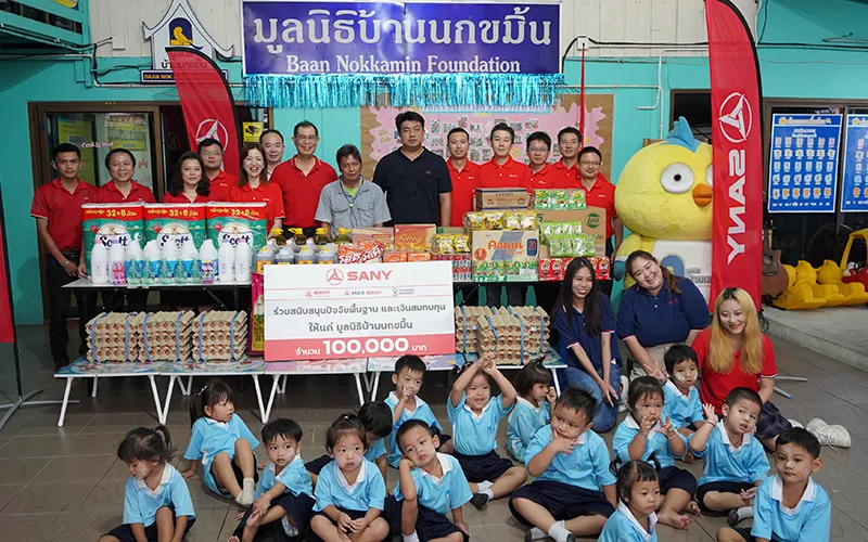 Mitten im komplexen globalen Markt hält SANY stets am Glauben fest, dass der Unternehmenserfolg mit einer Verpflichtung gegenüber der Gesellschaft einhergehen sollte. Basierend darauf haben SANY Thailand, SANY Financing Thailand (ein Joint Venture von SANY in Thailand) und der lokale Partner Maxcrane am 16. Mai 100.000 THB sowie eine Lieferung an täglichen Notwendigkeiten an ein Waisenhaus der Stiftung Baan Nokkamin gespendet.