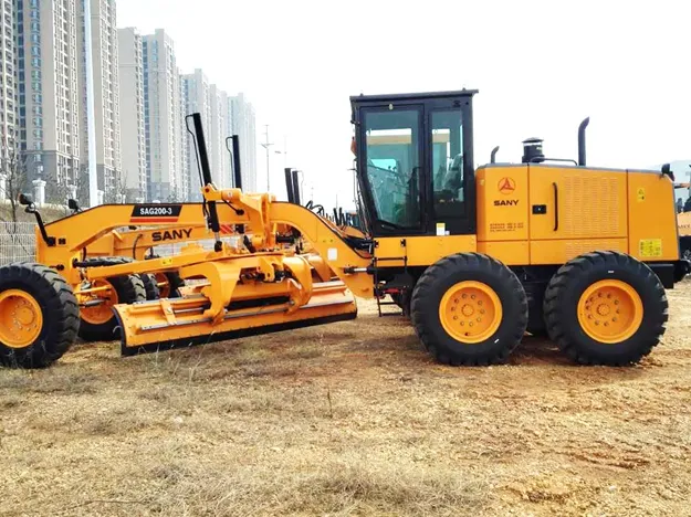 SAG200-3 motor grader is a new series of Sany Road Machinery, featuring wide speed range, powerful transmission, step-less speed change and easy operation. Sany SAG motor graders have the capability to provide exceptional performance even in challenging working conditions. Its unique patented slewing bearing extends the service life of moldboard circle to more than 10,000 hours.