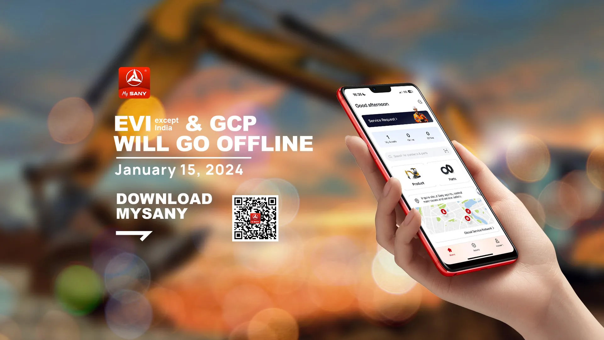 GCP and EVI App have companied us for a long time, and bring us lots of convenience. As the brand-new app "MySANY" launched on October 1st, GCP and EVI will officially bid farewell to the public on January 15, 2024.