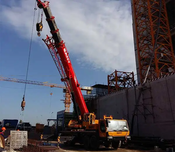 STC500 truck crane with maximum lifting capacity of 50t and STC750 truck crane with maximum lifting capacity of 75t were also used in the construction of the Great Mosque. Compared with the big crawler crane, the truck cranes are more flexible and mobile on site as they can travel easily from one place to another. Meanwhile, the truck cranes adopt tipping over early-warning technology to ensure a safe and stable crane operation. Maximum gradeability of STC500 truck crane is 40% and that of STC750 truck crane is 37%, providing excellent trafficability.
