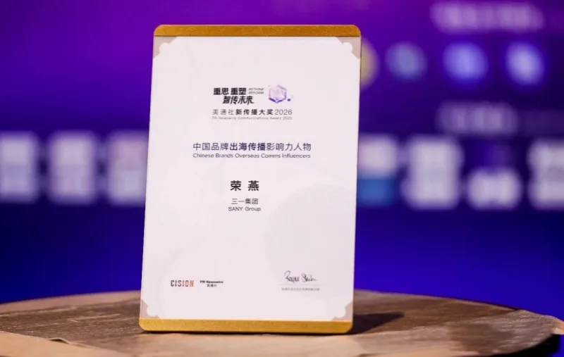On January 15, the 2026 PR NEWSWIRE CORPORATE COMMUNICATIONS AWARD 2026 concluded successfully. In recognition of its outstanding performance in brand globalization, SANY Group stood out among numerous participants, winning both the Campaign of the Year Award and the Outstanding Chinese Brand Global Media Impact Award. In addition, Mrs. Yolanda Rong, Global Brand Director of SANY Group, was honored as Chinese Brands Global Comms Influencer of the Year.