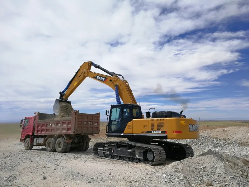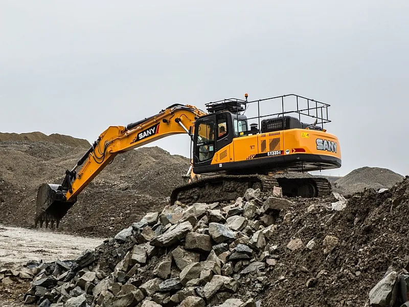 Built with advanced technology, SANY excavator SY335 is widely used in earthwork, road building, stone exploitation, civil engineering and mine construction. The efficient engine produces more power with less fuel consumption. The Dynamic Optimized Matching Control System provides real-time match between the engine power and the main pump, which reduces the hydraulic element's response time and lowers the internal power loss. The strengthened and optimized boom, arm and bucket provide considerable working range and depth while maintaining powerful digging force. What is more, the excavator can be equipped with versatile parts and attachments including bucket, breaker, cutter, ripper and long arm to implement more functions like digging, trenching, leveling and loading.