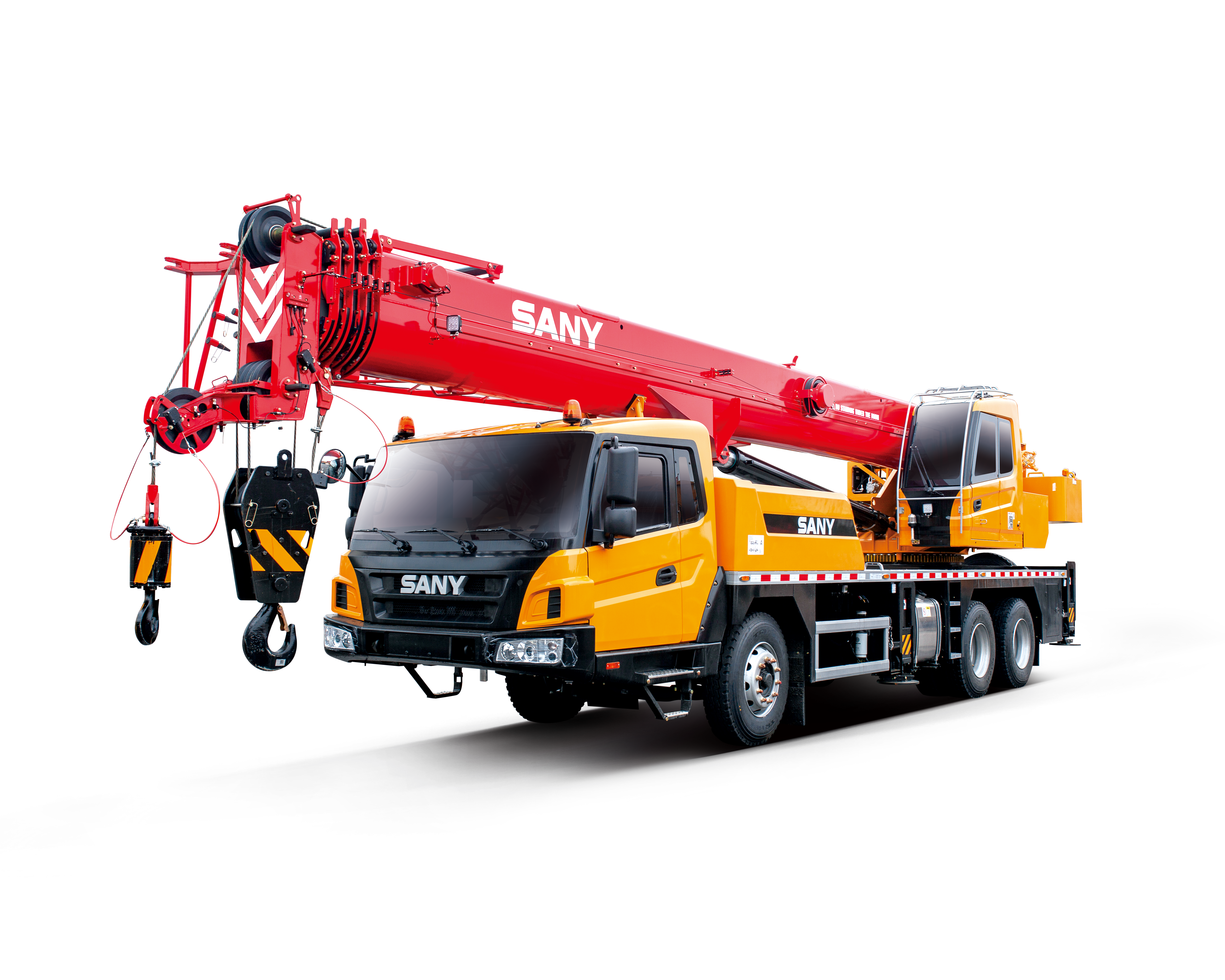 1. Definição: O guindaste de camião é um dispositivo de elevação montado no chassis de um camião. A sua principal característica é a capacidade de combinar funções de elevação e transporte num único veículo, tornando-o altamente manobrável e flexível. Pode chegar rapidamente a vários locais, elevar, carregar e transportar objetos pesados de forma independente e, em seguida, deslocar-se para outros locais. Por exemplo, a SANY dispõe de vários guindastes sobre camião, classificados por capacidade de elevação em categorias como guindastes sobre camião abaixo de 45 t, guindastes sobre camião de 50-90 t e guindastes sobre camião acima de 90 t.